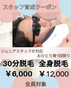 こんにちは😃 RUBURE千葉店です!! 今回はジュニアクーポンをお知らせ致します。 全身脱毛(ヒゲなしVIO込み) 1回¥12,000 全身ヒゲからお好きな箇所選べる30分間脱毛 1回¥6,000 ※新人ス